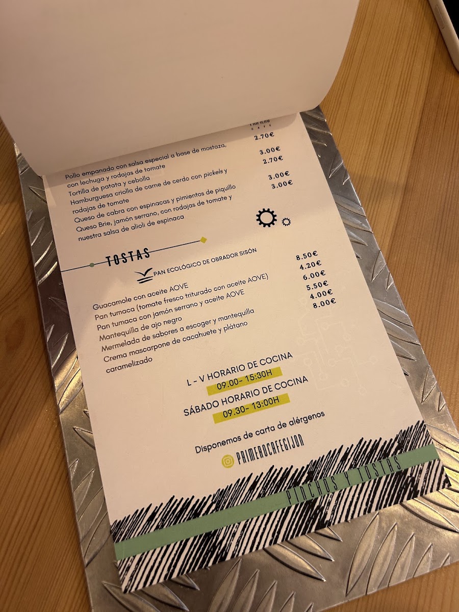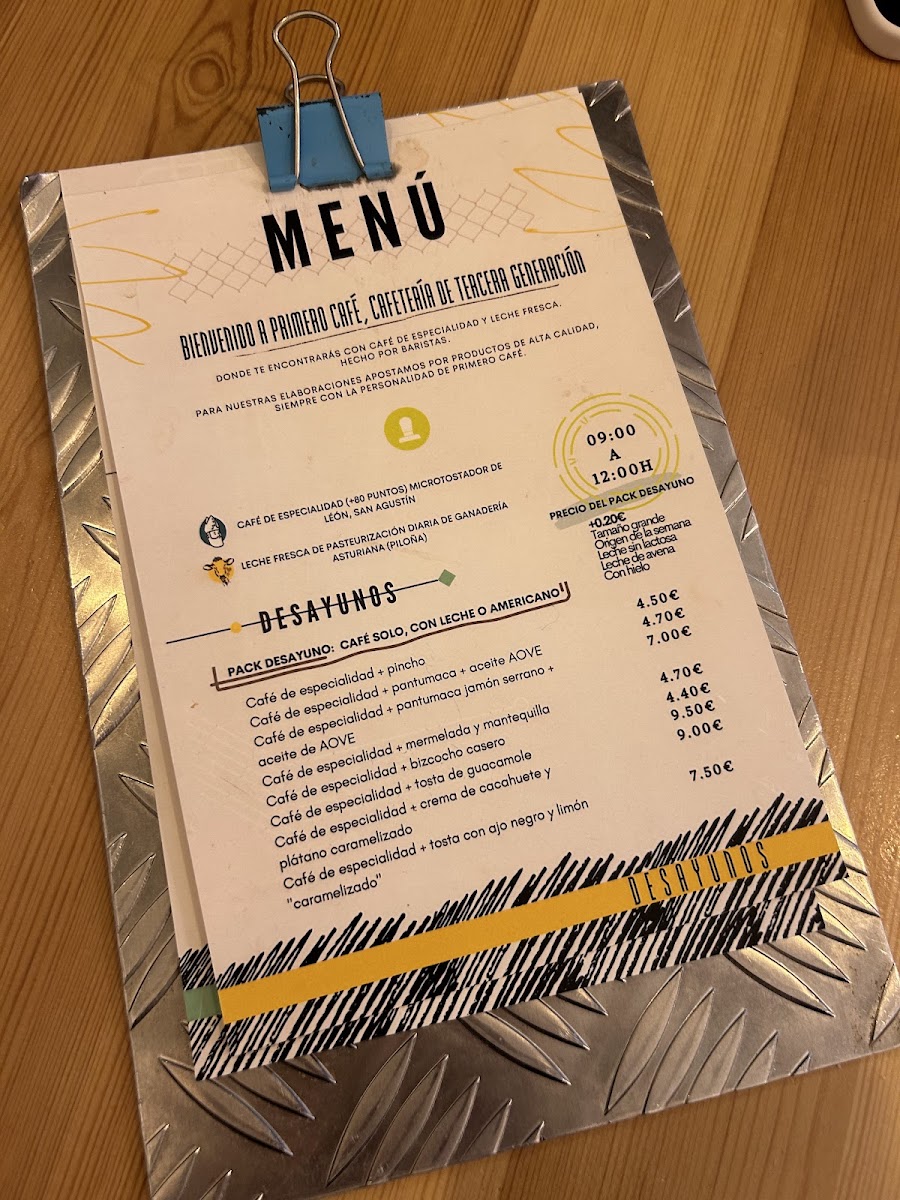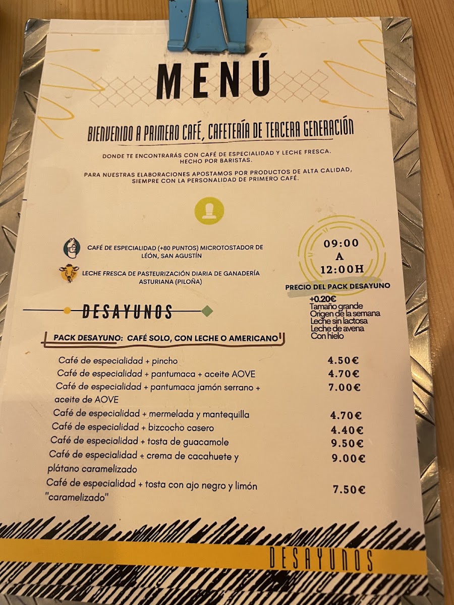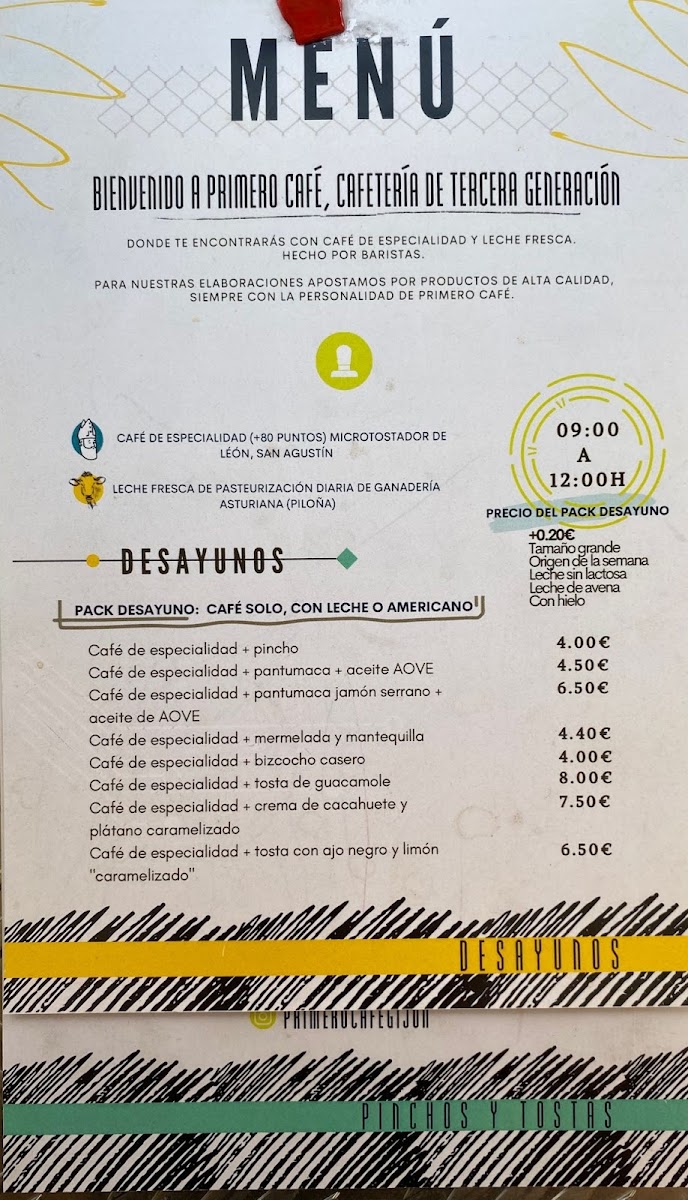 Primero Café’s menu offers a straightforward selection of comforting café staples and casual bites, ideal for starting the day or enjoying a relaxed morning break. The focus here is on well-crafted coffee drinks paired with traditional Spanish breakfast options, creating a warm and inviting atmosphere that encourages lingering over a slow cup.